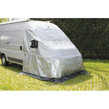Kompletní izolace kabinyTepelný izolační kryt Fiamma Thermoglas XXL je na míru přizpůsoben tvaru kabiny obytné dodávky Fiat Ducato, Citroën Jumper a Peugeot Boxer. Dvojdílnou plachtu využijete v létě i v zimě.Kompletní krycí clona je ideální pro použití v zimě, kdy účinně izoluje čelní okno a okna řidiče a spolujezdce, brání průvanu studeného vzduchu neizolovaným motorovým prostorem, podběhy kol a prostorem pro nohy a chrání tak před chladem.Možnost odepnutí dolní části oceníte ve slunečných dnech, kdy clonu můžete použít jako ochranu před přehřátím interiéru vozu slunečními paprsky.Klíčové vlastnosti izolační plachty kabiny Fiat Ducato:Poskytne kompletní tepelnou izolaci celé kabiny a ochrání kabinu před chladem.Vyrobeno z izolačního materiálu, ideálního do nízkých teplot a odolného vůči povětrnostním vlivům.Díky přesnému tvaru, který kopíruje tvar vozidla, je instalace velmi jednoduchá.Dolní část je možné jednoduše odepnout pomocí suchých zipů a použít pouze samotnou horní část jako sluneční clonu.Ochrana podvozku chrání před průvanem zespodu kabiny řidiče.Ušetříte náklady na vytápění a zvýšíte komfort během zimní dovolené díky kompletní izolaci přední části vozidla.Parametry:určeno pro vozidla:Fiat Ducato od roku výroby 06/2006Citroën Jumper od roku výroby 06/2006Peugeot Boxer od roku výroby 06/2006barva: šedá