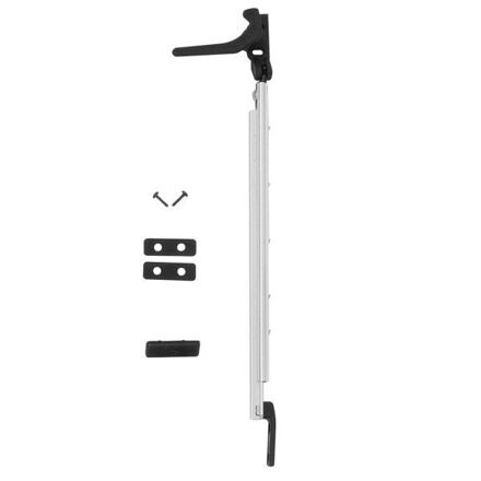 Vzpěra bočních oken Polyplastic, jejíž součástí je i aretovací klička. způsob uchycení: šrouby na obou koncích (rozteč děr 20 mm na okně, 25 mm na rámu okna) délka vzpěry 300 mm 5 aretační body Šrouby a upevňovací materiál je součástí balení.