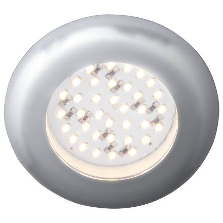 Zapuštěné stropní světlo do karavanu FriLight Nova s 36 SMD LED diodami, bez vypínače. Parametry: napětí: 12 V příkon: 1,2 W světelný tok: 68 lm barva: stříbrná / chromová materiál: ocel montážní otvor: ø 50 mm. instalační hloubka: 14 mm průměr: 70 mm hmotnost: 40 g